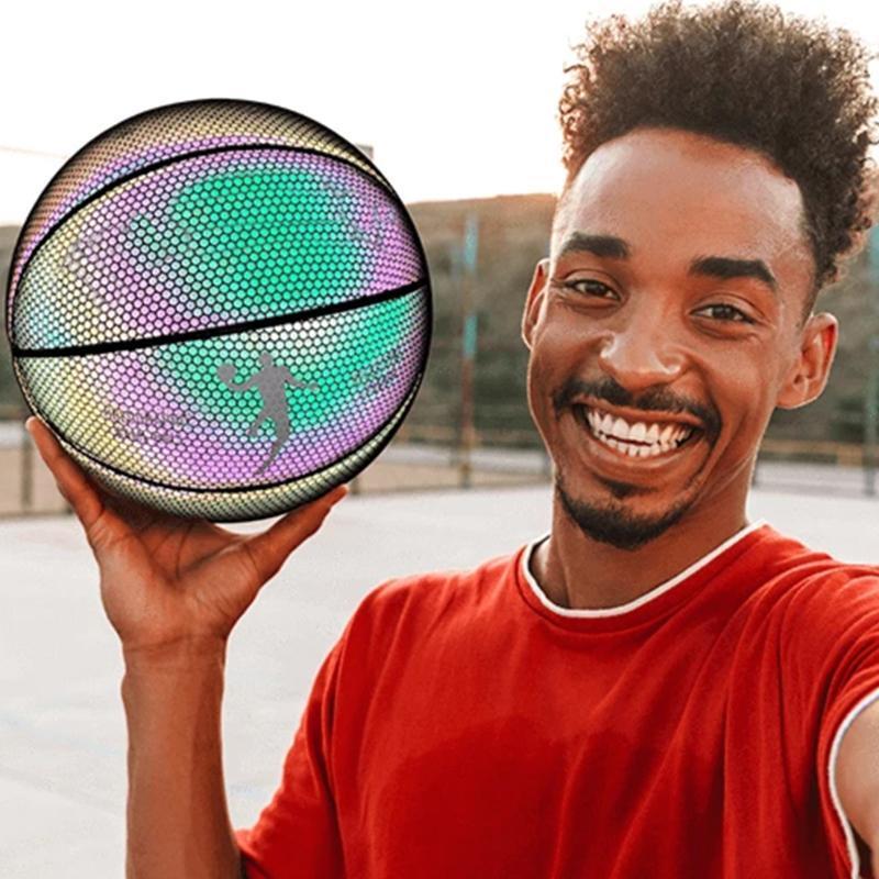 🏀Holographic glowing reflective basketball uses brand new technology with reflective leather to make our holographic game ball.  Nobody has seen anything like this before, so be the first to show all your friends the coolest basketball they have ever seen.  Posting basketball highlights on social media has never been as eye catching as it is now.